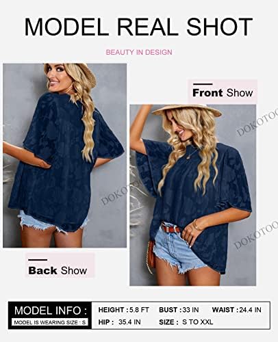 Dokotoo Womens 3/4 Bell Sleeve Shirt Summer season Crewneck Lace Tops Floral Textured Babydoll Shirts