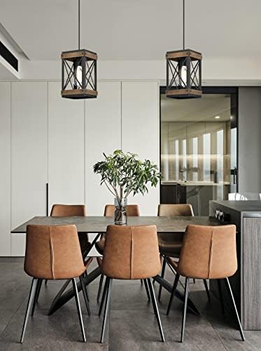 Dolaimi Home 1 Gentle Adjustable Rustic Farmhouse Pure Wooden Pendant Gentle (Set of three) with Wooden and Steel Cage Mini Pendant Lighting Fixture for Kitchen Island Cafe Bar Black End
