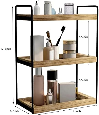 Dorhors 3 Tier Rest room Counter Organizer,Countertop Rest room Organizer and Storage Shelf,Rest room Counter Tray and Vainness Organizer,Make-up and Beauty Organizer ,Wooden Counter Standing Spice Rack