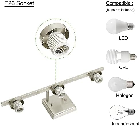 BULB REQUIREMENT – The lavatory lights over mirror requires 3 x E26/medium base max 60W Bulb (Not Included). It is suitable with LED bulbs, CFL bulbs, Halogen bulbs, or Incandescent bulbs on your comfort.