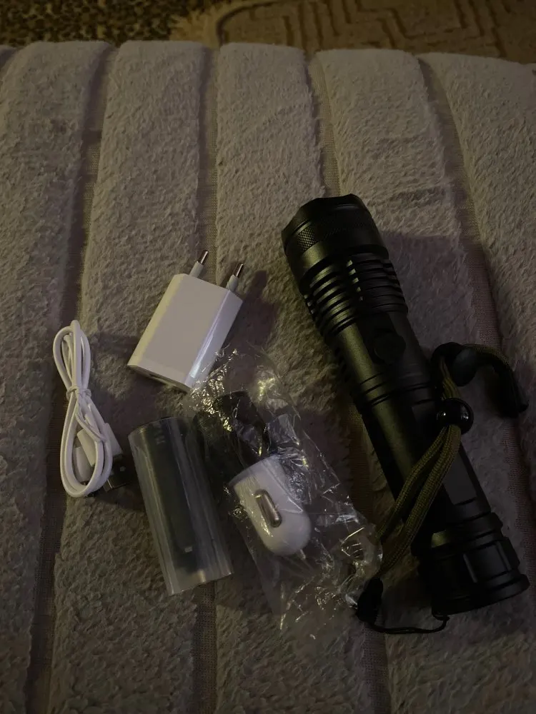 Flashlight bomb, very long went, the seller and I recommend it, it shines just fire, who will order, know one thing, the flashlight comes with a rechargeable battery, so that the road does not turn on and does not discharge