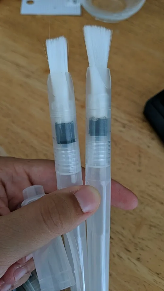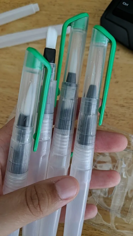 These seem like really nice brushes have used them for watercolour in pans and the do quite nicely. The largest brush has something in it that I am hoping is just some adhesive that has gone brown. The largest one also twists a bit so it kind of seems like it could be used like a fan brush but I’m not sure this is intentional. When water is in the brush it’s hard to squeeze out but that’s good because it doesn’t just come out whenever. Ordered 31st July, arrived 10 August so not too bad. Excited to use more of these .