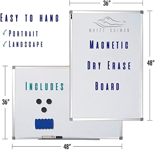 White Kaiman Magnetic Dry Erase White Board w/ Silver Body writes clean and cleans simply with no marks left behind. Light-weight design makes this Magnetic Dry Erase Board constructed straightforward to put in mounting on any dry-wall, with directions and a mounting package that solely requires a screwdriver. Slim design with a silver body made to look nice in any room for house, workplace or faculty. Contains Magnetic Dry Erase White Board w/ Silver Body, 1 black marker, 1 magnetic eraser, 3 hanging magnets, and 1 pen tray. Buyer satisfaction is 100% assured, fast and straightforward assist by contacting us by means of Amazon for any points!