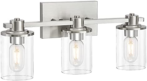 DUJAHMLAND Lavatory Self-importance Mild Fixtures, 3-Mild Brushed Nickel Steel Wall Mild with Clear Glass Shade for Lavatory Lighting (Brushed Nickel, 3-Mild)