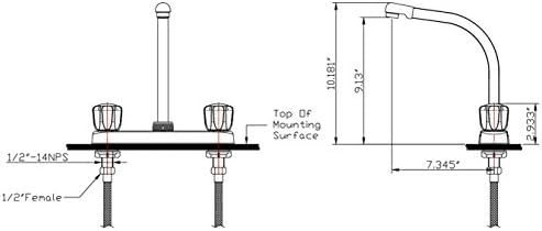 Specs | Works on any 2-hole sink opening. Simply over 10” excessive, and knobs are just below 3” excessive. Stream fee is 2 GPM. Drip-free washerless cartridges. UPC- and CUPC-Licensed.