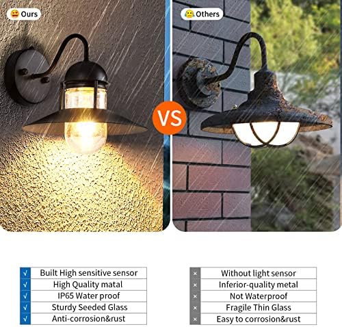 【Large Software】 : This sensor exterior mild fixture will add a conventional barn mild look to your porch. It’s a farmhouse industrial-style outside wall mild. Appropriate outside lights for home,storage, hall, balcony, porch, doorway, courtyard, entrance manner, entryway, and as evening security, space, and peripheral lighting to deliver additional safety to your loved ones.