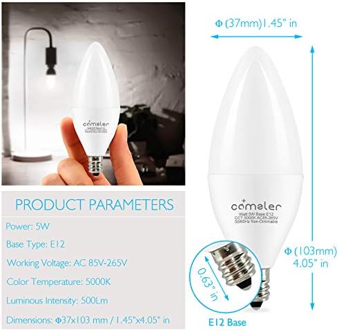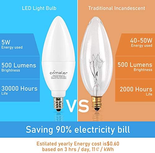 【 Vitality Environment friendly 】Comzler’s Candle Shiny Mild Bulbs solely devour 5 Watt and value you $0.6/bulb. It’s an ideal financial various of a conventional 60W Candelabra Mild Bulbs which price you as much as $10(every bulb). Comzler E12 LED bulbs will lower 90% lighting charge in your electrical energy invoice.