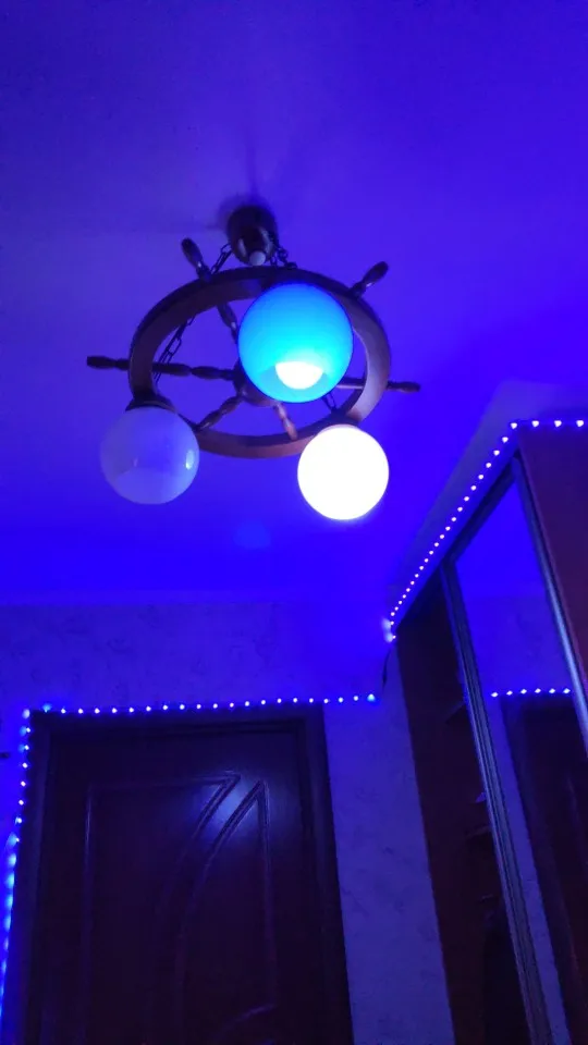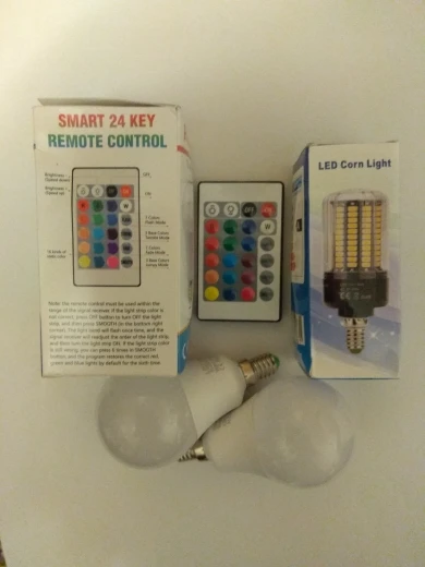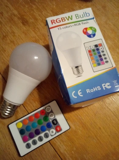 Great bulb! Works clearly, the remote is responsive even when deployed to 180 from the remote. Color saturated, 4 brightness gradations, 4 kinds of flashing color with adjustment, including white strobe light is not adjustable in speed. The light output is not 5W, but a maximum of 2-2,5W, compared with 4 watt LED Feron. For the night lamp is bright, but for mood and for watching movies is very suitable. I am pleased. In the photo, not the main colors, the maximum brightness.