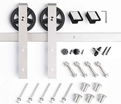 EaseLife 6 FT Brushed Nickel Sliding Barn Door {Hardware} Observe Equipment,Huge Spoke Wheel,Heavy Obligation,Simple Set up (6FT Observe Equipment for 30″~36″ Vast Single Door)