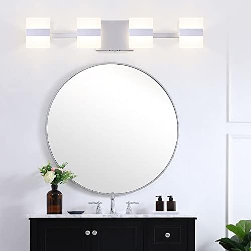 EAYZIIN Fashionable Rotatable Toilet Self-importance Lights,Up to date LED Toilet Mild Fixture,Acrylic Tub Wall Self-importance Lights Over Mirror,4-Mild Sliver