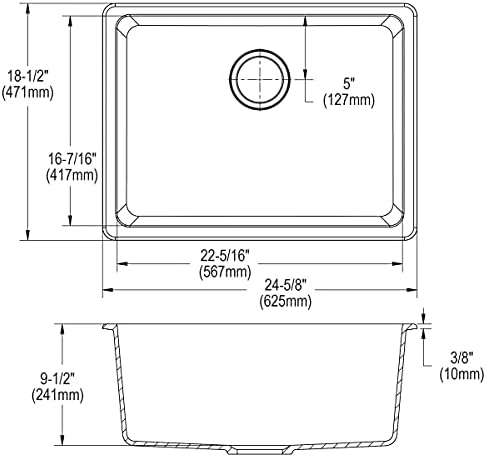 Sink Dimensions: 24-5/8″ X 18-1/2″ X 9-1/2″ Min. Cupboard Dimension: 30″
