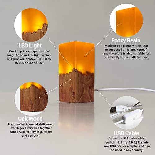 Epoxy Resin Wooden LED Nightlight – Small Night time Gentle Lamp – Add Atmosphere to Your Residence – USB Powered – Bedside Night time Gentle – Small Bed room Lamp – Mini Lamp (Cool White))