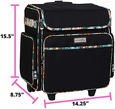Every part Mary Black & Floral Rolling Scrapbook Storage Tote – Scrapbooking Storage Case for Rings, Paper, Binder, Crafts, Beads, Scissors – Telescoping Deal with with Twin Wheels – Craft Case