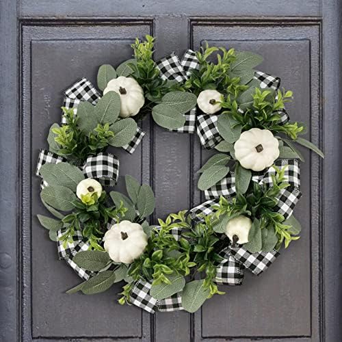 MATERIAL – Made with stunning greenery and white pumpkins, full with black and white buffalo plaid bows.