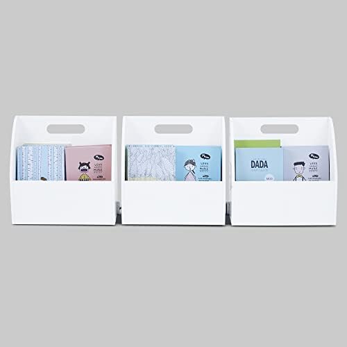MOBILE: These bookcase organizers characteristic a deal with cutout plus wheels to simply transfer from room to room.