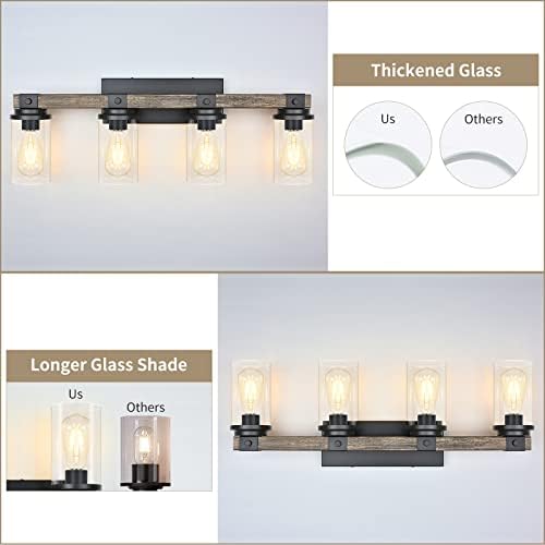 π‘Hand-Polished of Farmhouse Toilet Vainness Gentle 4 Gentle: This black wall sconce manufactured from black steel and uncooked wooden with a transparent glass shade, this wooden lavatory lighting fixtures has a classic and rustic design model that provides magnificence and nature to your own home. The picket components of the toilet sconces are manufactured from hand polished and every one is exclusive and delightful, creat an attention-grabbing look that lends farmhouse aptitude to you room.
