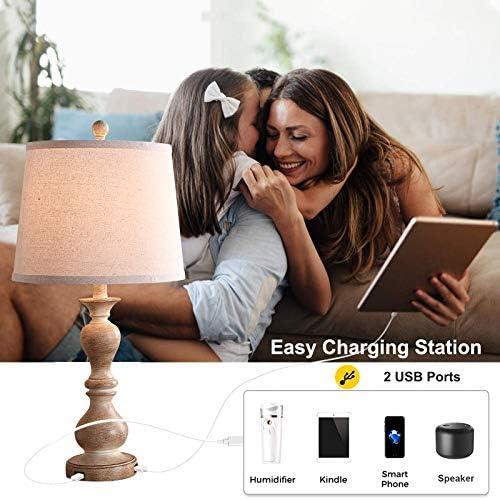 Farmhouse Desk Lamp Set of two, 26″ Resin Bedside Nightstand Gentle with 2 USB Ports, Rustic Bedside Lamp for Bed room Dwelling Room Workplace, 2 Pack (Vintage Beige Base, Beige Shade)
