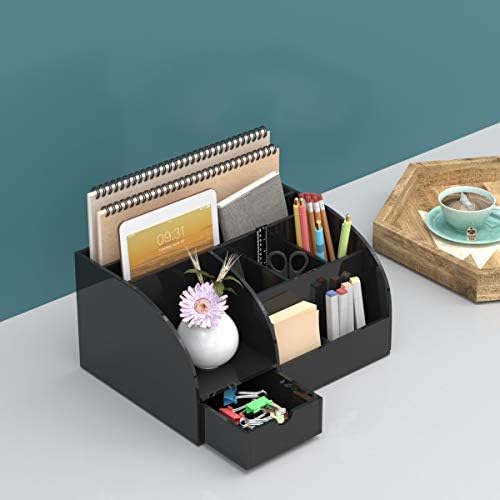 FEMELI Workplace Desk Organizer and Equipment, Acrylic Desk Organizer with 8 Compartments +1 Drawer(Black)