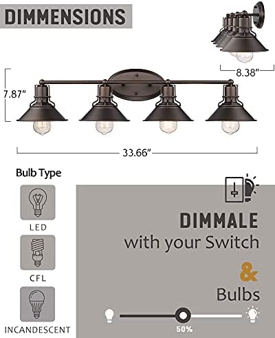 Be the first to review “FEMILA Self-importance Wall Sconce Lighting 4 Lights, Classic Rustic Lavatory Self-importance Mild Fixtures Over Mirror for Lavatory Cupboards Dressing Desk, Oil Rubbed Bronze End, 4FY52B-4W ORB”