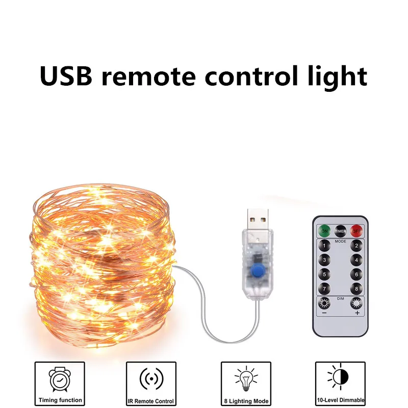 Specification: Festive outdoor copper string light 10m 20m remote control timing battery USB garden light for party Christmas decoration
