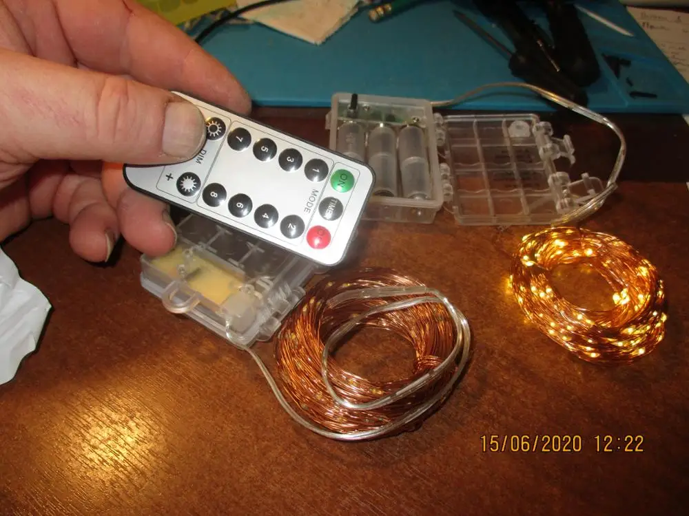 LED Type:ky05 LED quantity: 50pcs/100pcs/200pcs Length: 5 meter/10 meter/20meter Supply voltage: 4.5V Working Power: 5w-8W /sets Lead Material: Copper wire Waterproof:IP65 Led Color:Warm white / white Power:3 x AA batteries (Not Included) Remote Controller Battery : 1pcs CR2025 (Not Included)