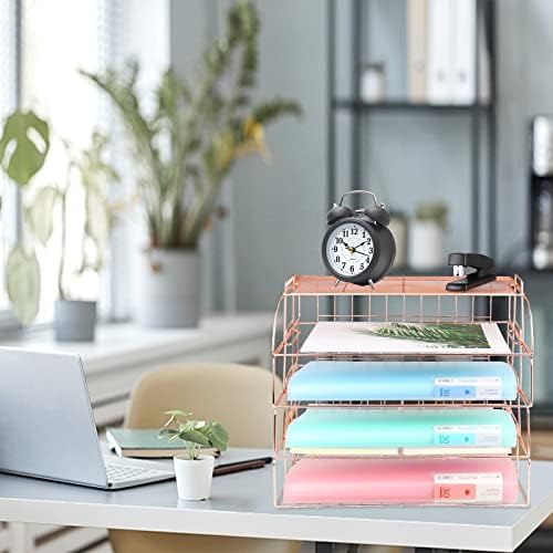 File Organizer for Desk – Desk Equipment for Girls 4 Tier Rose Gold Desk Organizers Stackable Desk Organizer Trays Workplace Paper Tray Organizer Desk File Organizer