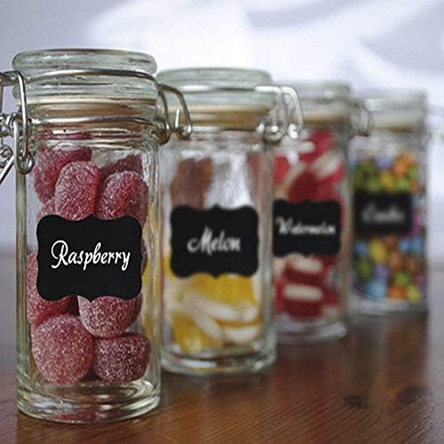 FirstZi 96pcs 50mmx35mm Black Resuable Chalkboard Sticker Labels for Storage Bins, Glass Jars, Canisters, Bottles, Pantry, Crafts, with 1pc White Chalk Marker