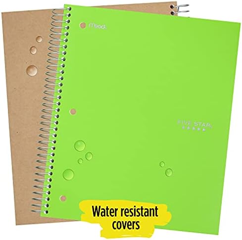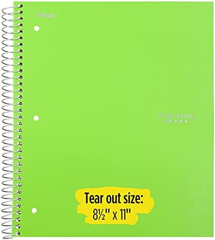LASTS ALL YEAR. GUARANTEED!* This 5 Star 3 topic pocket book has 150 double-sided, school dominated sheets, which battle ink bleed. Two 2-pocket dividers maintain 11″ x 8 1/2″ free sheets, whereas powerful pockets assist forestall tears. Pocket book additionally has water-resistant covers. Neat Sheet perforated sheets make it simple to tear out assignments. Spiral Lock wire binding prevents coil snags in your garments or in your backpack. Sheets measure 11″ x 8 1/2″ when torn out. General pocket book measurement is 11″ x 9 7/8″. 6 pack contains: Darkish Grey, Vibrant Orange, Lime, Yellow, Teal, Vibrant Pink. *Assure is legitimate for one 12 months from buy date. Doesn’t cowl misuse.