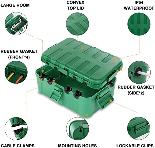 It options with massive dimension and 6 cable entry ports, that are nice to guard outside retailers, timers, energy strips, string lights, vacation decorations and extra outside electrical connections.