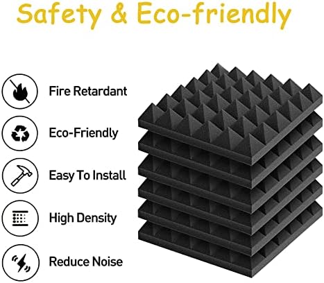 FONESO 12 Pack Acoustic Panels, 2″ x 12″ x 12″ Sound Proof Foam Panels for Partitions, Wedge Sound Absorbing Panels, Acoustic Foam Noise Canceling Panels Hearth Resistant for Studio Recording, Residence Workplace