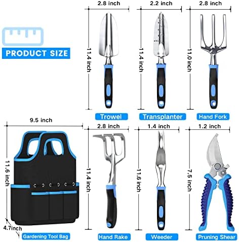 Backyard Device Set, Gardening Items for Ladies & Males,WANCHI 7 Pcs Heavy Obligation Aluminum Rustproof Gardening Hand Instruments,Blue Gardening Package ( Backyard Tote Shovel Hand Rake Fork Weeder Pruner Transplanter )