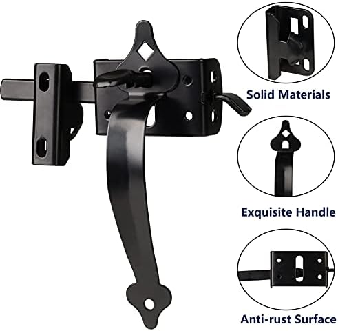 Gate Latch, Thumb Latch {Hardware}, Gate Latch for Picket Fence Heavy Obligation, Self Locking Latches with 8 inch Deal with, Gate Equipment for Picket Fence & Swing Out of doors Gate – Metal, Black End