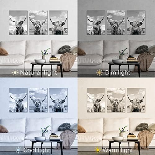 GDHBLING Gray Highland Cow Wall Artwork Rustic Wall Artwork for Toilet Farmhouse Canvas Wall Artwork for Residing Room 3 Piece Western Bed room Wall Artwork 12×16 Inch