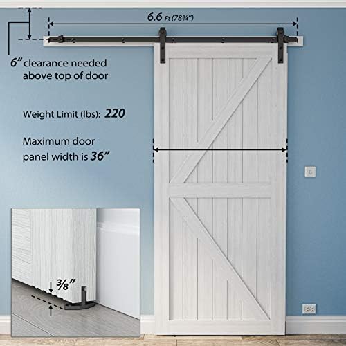 Genius Iron 6.6FT Single Barn Door {Hardware}, Traditional Design Customary Observe with Upgraded Nylon Bearings, for 36in-40in Extensive Sliding Door Panel, Straightforward Set up, “Fundamental J”