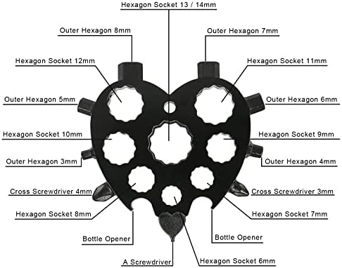 All-in-One Software for Males- 23 in1 multitool incorporates: Bottle opener, T20 screwdriver, Phillips screwdriver, Slotted screwdriver, Bike spoke wrench, Hex wrench 3-10mm, Exterior hex wrench 4-12mm, Inside quadrangle wrench 5mm*5mm