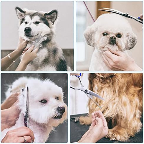 【5 in 1 Canine Grooming Scissors Set】The canine grooming scissors set comes with 1 straight scissors, 1 thinning scissor, 1 curved scissor, 1 grooming comb and 1 storage case
