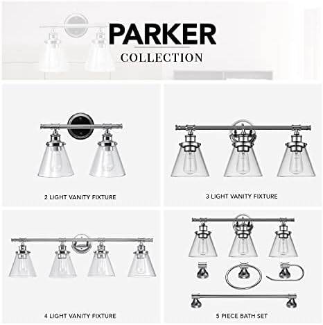 Globe Electrical 51445 Parker 3-Gentle Lavatory Gentle Fixtures, Chrome Lavatory Vainness Gentle, Farmhouse Lavatory Lights Over Mirror with Clear Glass Shades