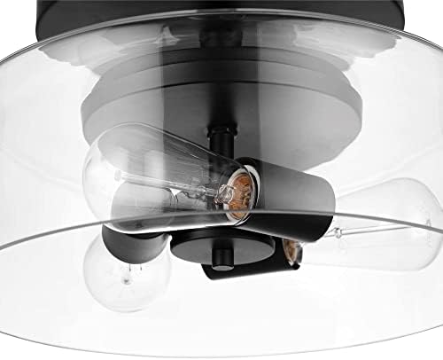 Globe Electrical 61268 Wendell 3-Mild Flush Mount Ceiling Mild, Matte Black, Clear Glass Shade, Classic Edison Incandescent Bulbs Included, Industrial Ceiling Mild, Semi Flush Mount Ceiling Mild