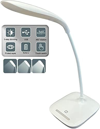 Go Lamp LED 3 Dimming Ranges Lamp 2-in-1 Contact Coltrol with Night time Mild. USB or Battery Operated. Black or White (White – 2 Pack)
