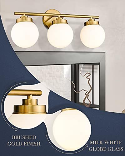 Gold Toilet Mild Fixtures, LMS 3 Mild Globe Toilet Vainness Lights with White Glass Shade, LMS-098