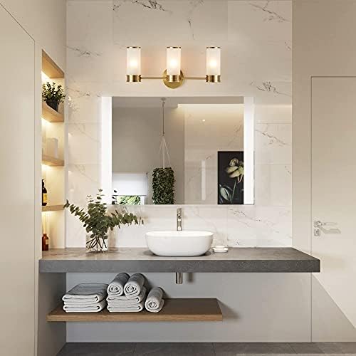 Gold Frosted Glass Wall Sconce Self-importance Lighting Fixtures, HAHZT Toilet Wall Gentle 3-Lights Trendy Wall Lamp for Toilet, Mirror, Bed room, Dressing Desk, Lobby,Aisle (Not Together with Bulb)