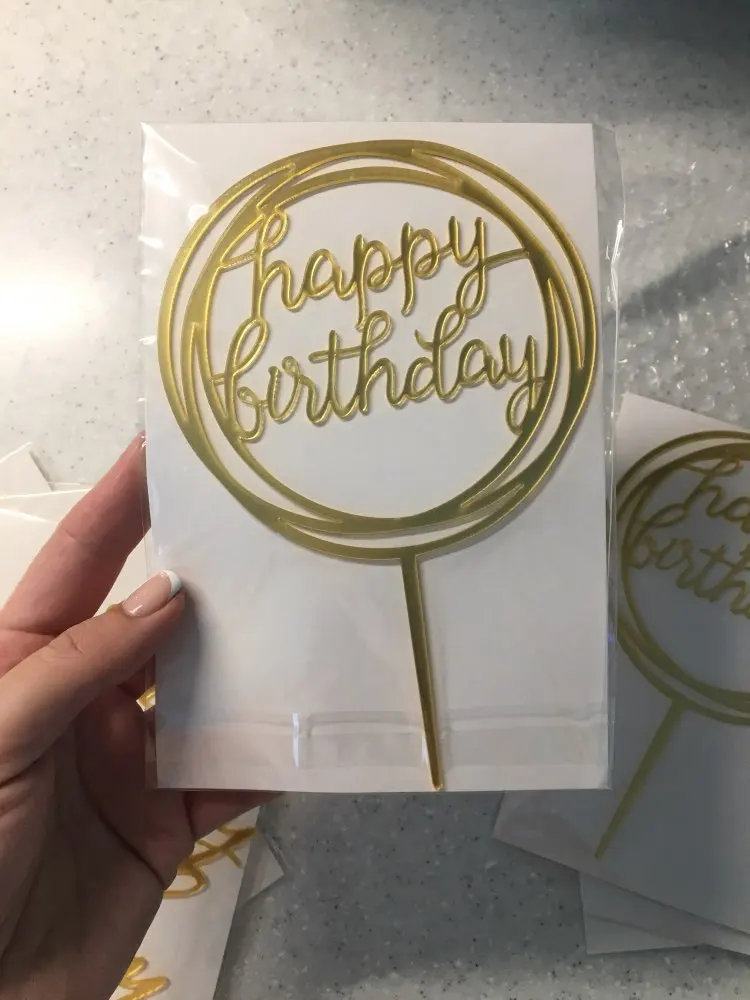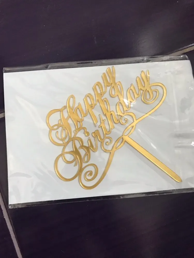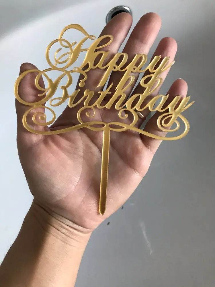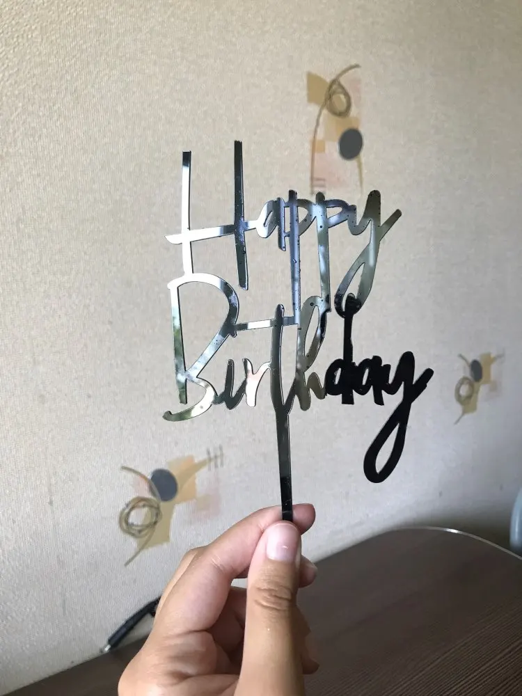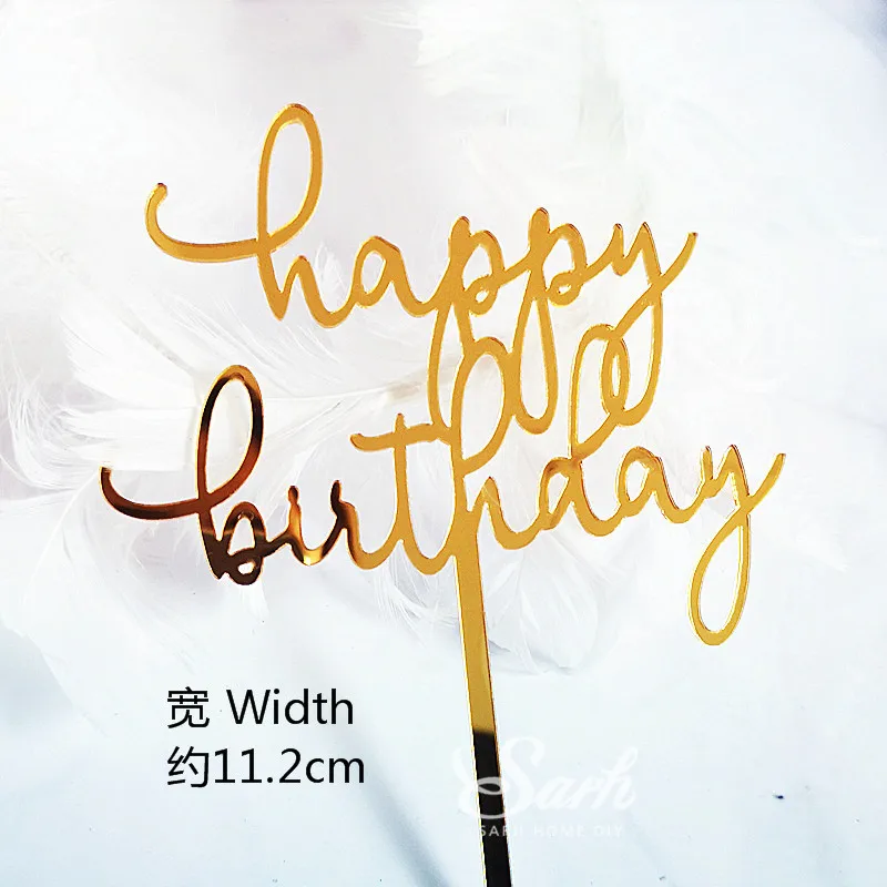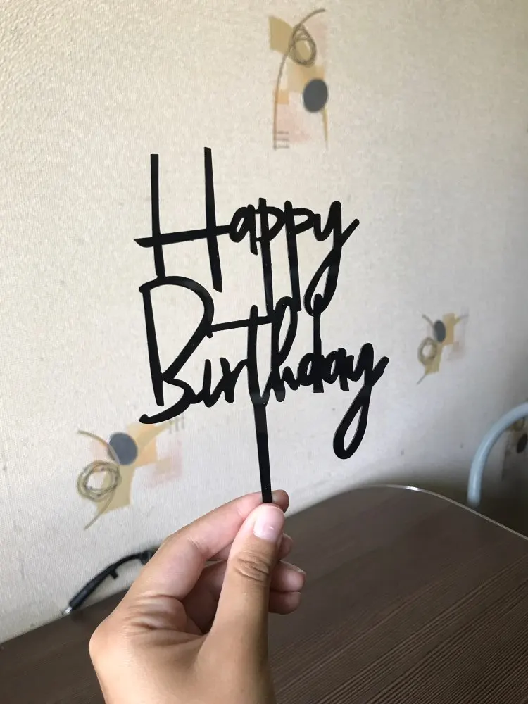 20 reviews for Gold Silver Black Acrylic Hand writing Joyful Birthday Cake Topper Dessert Ornament for Birthday Get together Beautiful Presents