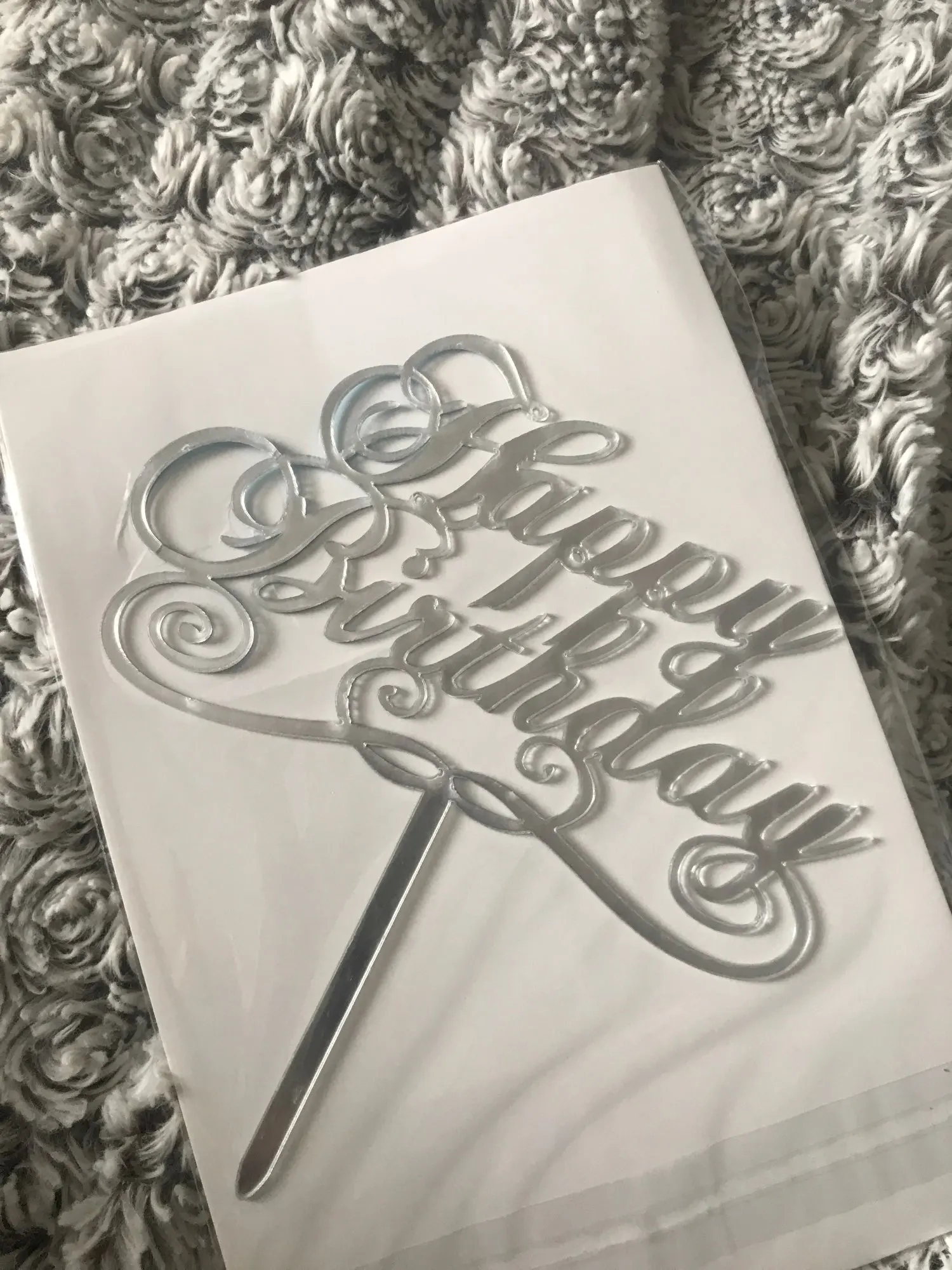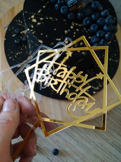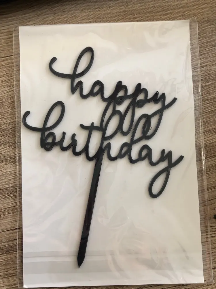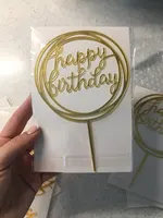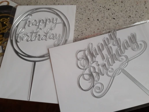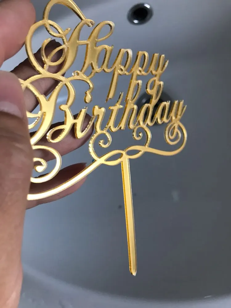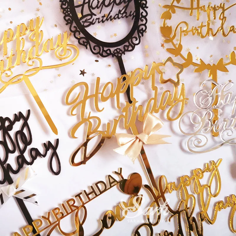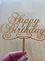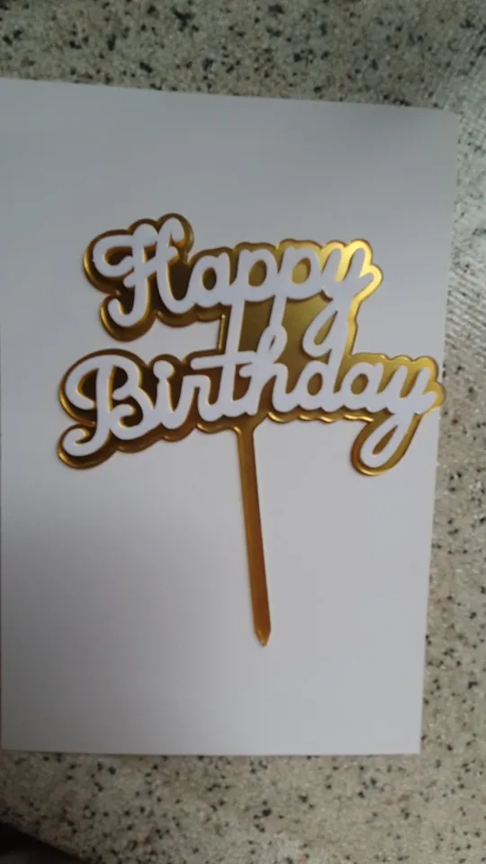 20 reviews for Gold Silver Black Acrylic Hand writing Joyful Birthday Cake Topper Dessert Ornament for Birthday Get together Beautiful Presents