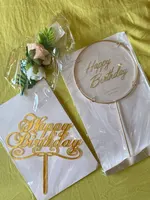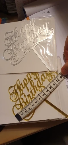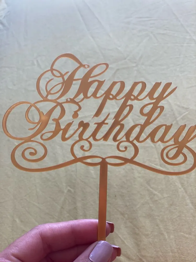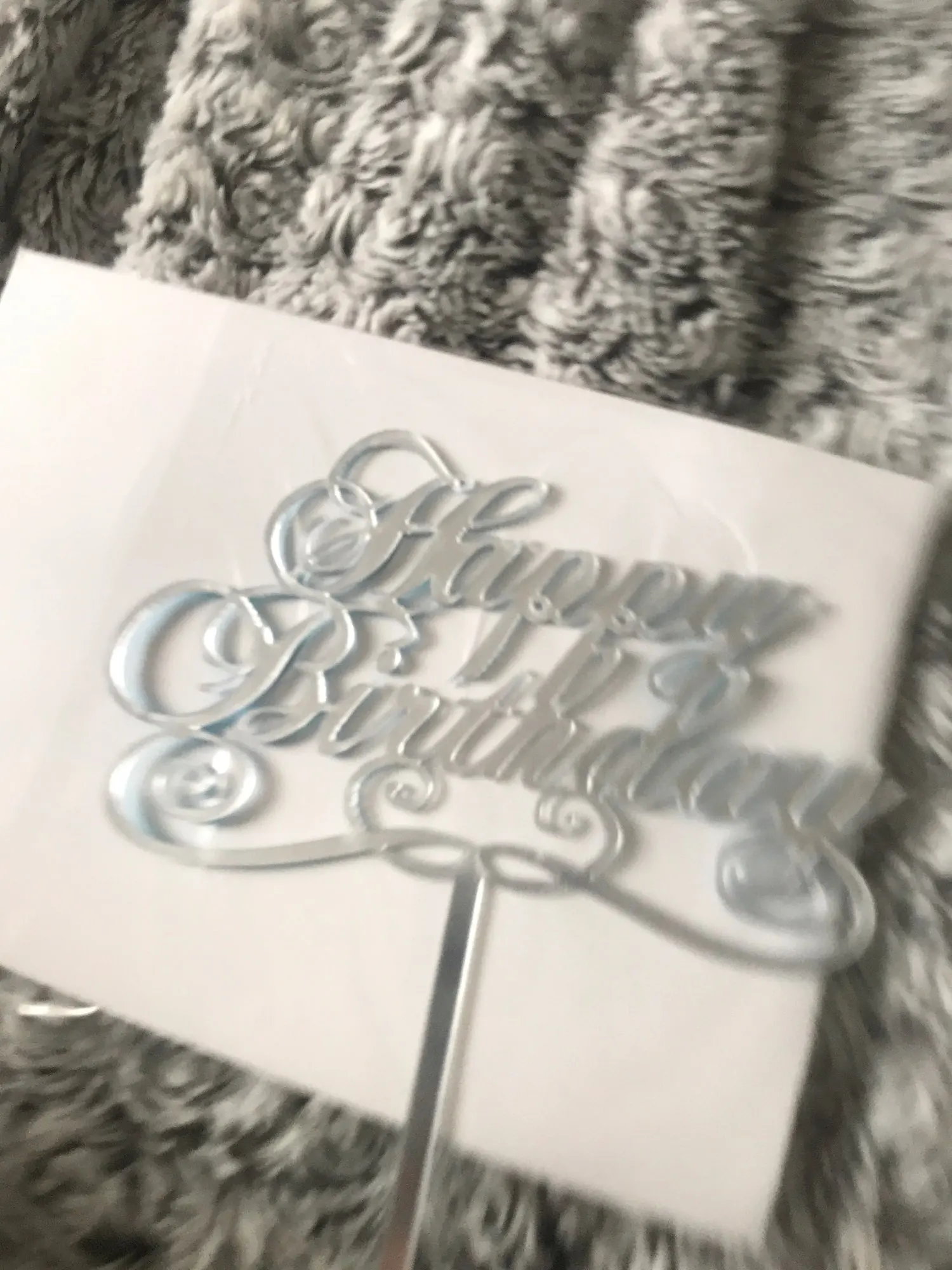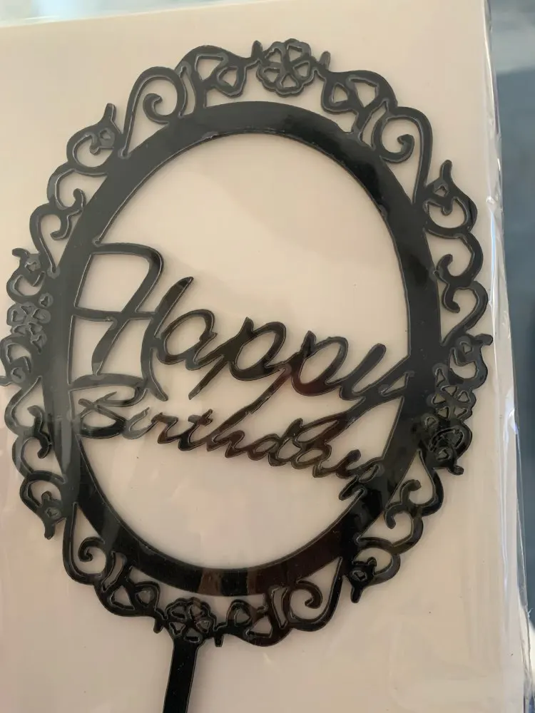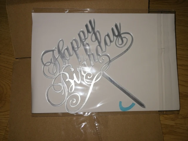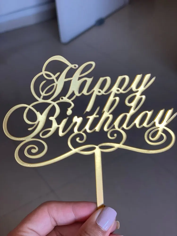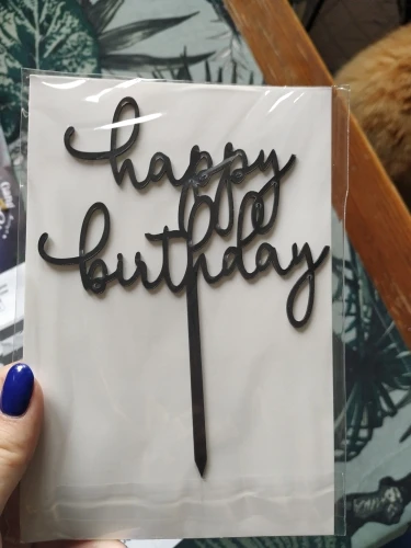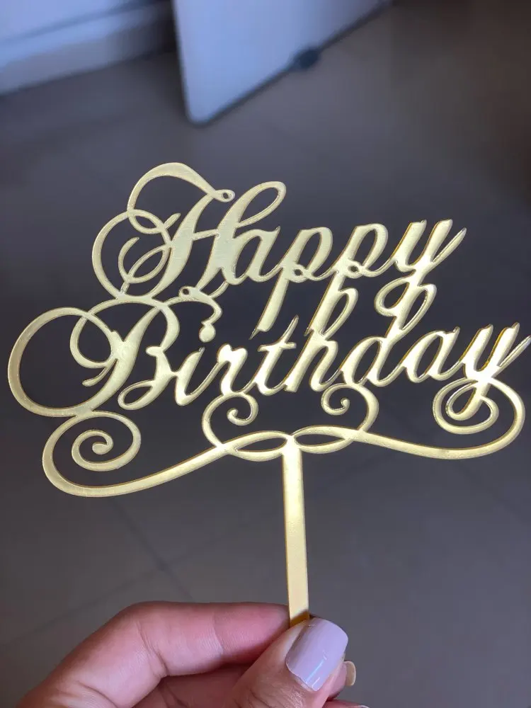 20 reviews for Gold Silver Black Acrylic Hand writing Joyful Birthday Cake Topper Dessert Ornament for Birthday Get together Beautiful Presents