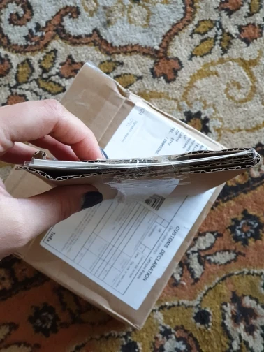 Paczka wyglądała bardzo źle, ale produkt był bardzo dobrze zabezpieczony. Bardzo ładnie wygląda, ma folie zabezpieczającą na napisie.
