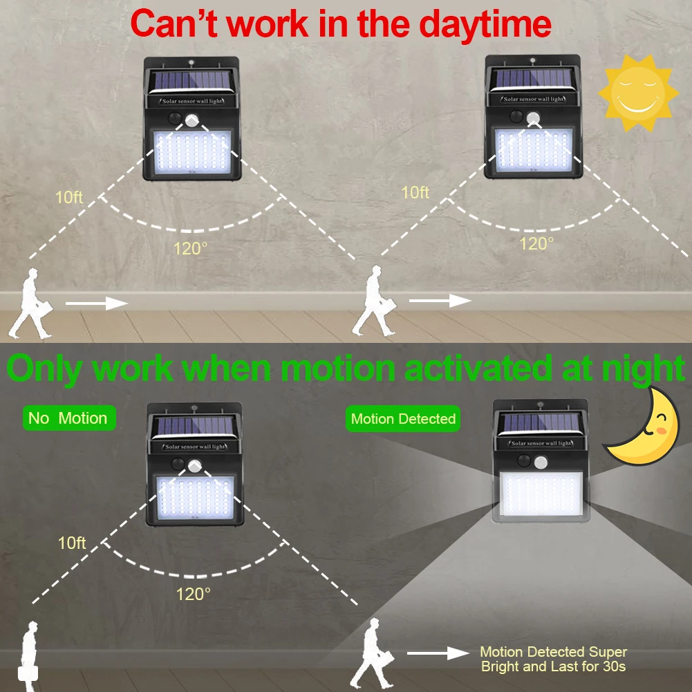 Specification: Goodland 144 100 LED Photo voltaic Mild Outside Photo voltaic Lamp PIR Movement Sensor Photo voltaic Powered Daylight Avenue Mild for Backyard Ornament