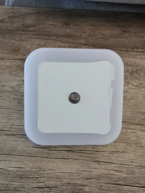 Le carré blanc au milieu est mal coupé. Sinon ça fonctionne bien. La lumière s’adapte à la luminosité et devient de plus en plus forte en fonction de l’obscurité. Bien