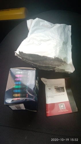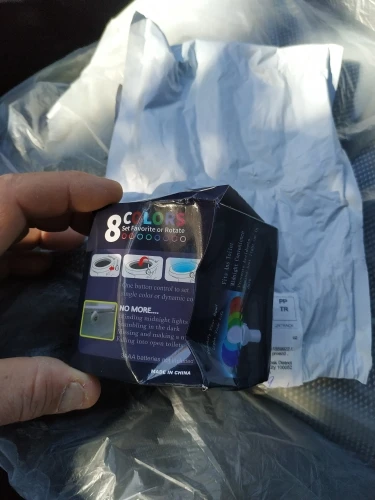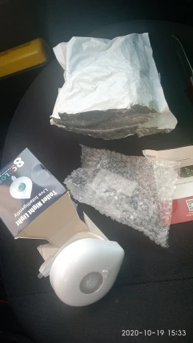 посылку получил через 45 дней после заказа.коробка была смята!!!! см фото. а в остальном всё целое. прибор работает!!!! датчик движения чувствительный,даже под углом в диапазоне 130° срабатывает!!! и на расстоянии 2м(перпендикулярно) срабатывает!!!! светит ярко! правда,если выберишь цвет свечения,то после попадания яркого света на датчик, он начинает светить с красного,то есть с начала. при ярком свете датчик не срабатывает!!!! прикольная штучка!