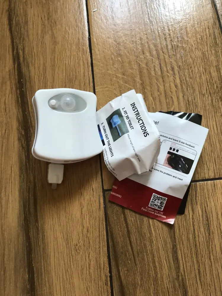 Great lamp! Sufficiently sensitive sensor, bright illumination. Well attached to the rim of the toilet. Great thing! Made very neat. Delivered in less than a month, for which Thank you to the seller. The only thing in the way was a box that was packed in a postal bag. But fortunately, the lamp itself is not damaged and works perfectly. I recommend to buy!