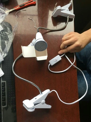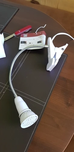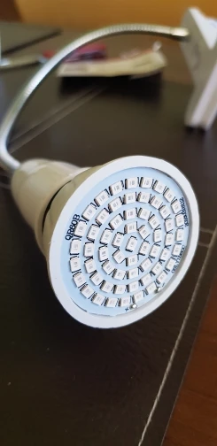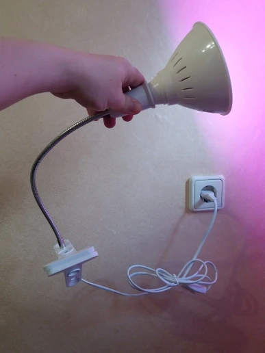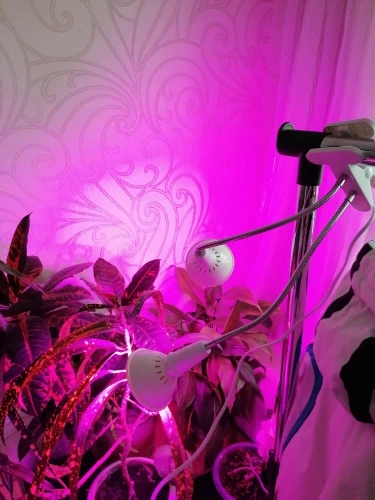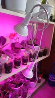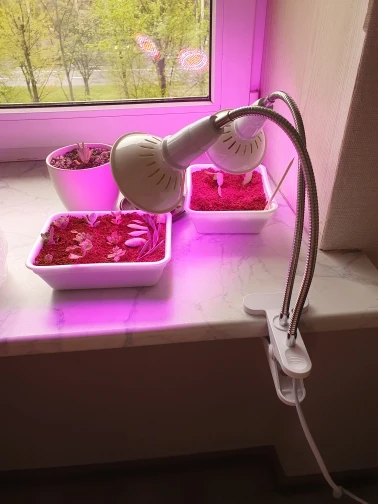 Полное соответствие описанию, цветочкам нравится. Нужно придумать куда прикрепить её (за ручку окна не держится), гибкий шланг прлворачивается у основпния прищепки под тяжестью лампочки, но это уже мелочи. Лампа в комплекте пришла с дырочкой на цоколе, не искрит, был надет защитный колпачок на него. Есть кнопка включения обычная, без регулировок.